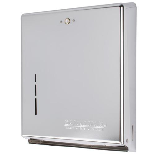 The San Jamar T19000XC CFold/Multifold Towel Dispenser has a versatile design allowing operators to choose which folded towel to use. This durable dispenser has a large capacity of 300 c-fold towels or 500 multifold towels for reduced maintenance costs and a standard key lock to prevent towel theft. Dimensions (WxDxH) 11.375" x 4.000" x 14.750".