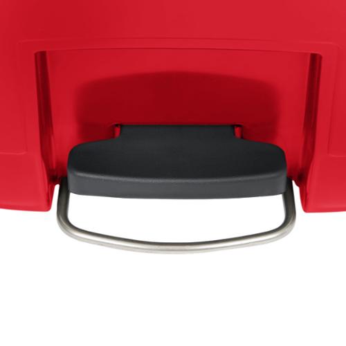 The Rubbermaid Commercial Streamline Front Step-On Container has a small footprint and offers increased pedal clearance for easy foot access and hands-free waste disposal. A tight-fitting lid has a controlled close to reduce noise and an internal hinge design to prevent wall damage. Offering easy maintenance, this step-on container features a liner retainer band to securely hold liner bags.