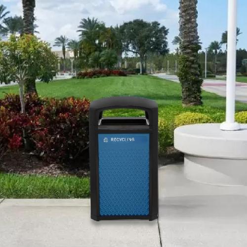 - A variety of colored recycling panels makes sorting recycling easier for both patrons and staff