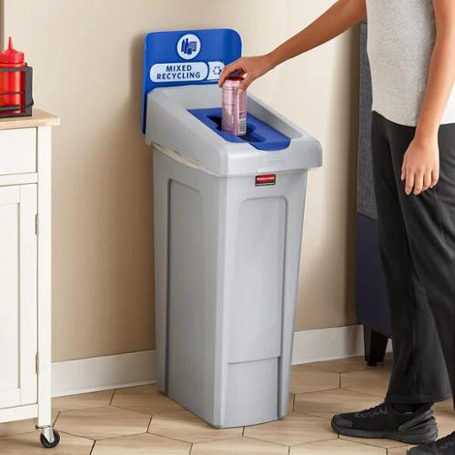 The Rubbermaid Commercial Slim Jim Recycling Station offers a front-of-house look with back-of-house functionality.