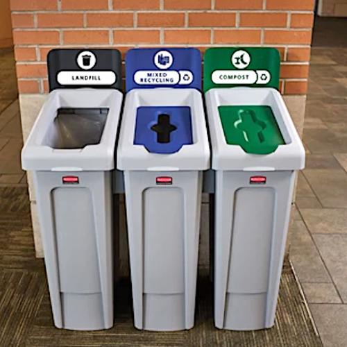 The Rubbermaid Commercial Slim Jim Recycling Station offers a front-of-house look with back-of-house functionality.