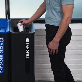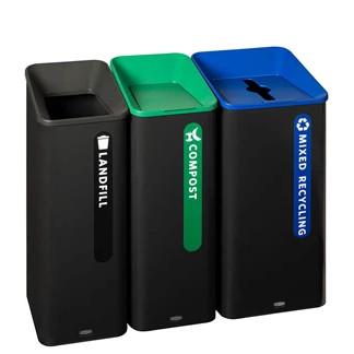 • A variety of colored recycling lids and designated lid openings clearly indicate streams to users.