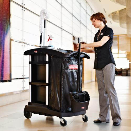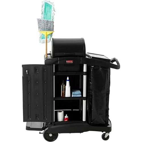 - Secure cabinet doors keep cleaning supplies concealed from view and locked up when carts are unattended.