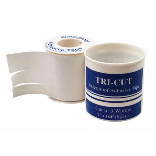 Swift First Aid Tri-Cut Tape Adhesive measures 2" X 5 yd. Adhesive tape adheres well with good initial stick and is waterproof. Adhesive tapes are non irritating and easy to tear. 1 roll each