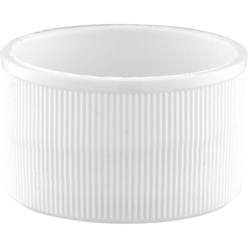 28mm white ribbed sided cap. This closure is made of polypropylene and fits 28-410 bottles and jars. The ribbed-sided design allows for ease of use when removing lid. Induction liners are a popular choice when a tamper evident air tight seal is needed. It also works well with liquid products.