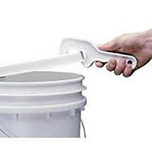 Removes lids from plastic pails and buckets without straining. Works quickly by applying leverage. Will not cut or distort container. Ideal for removing food service container lids. Stable base and caster placement increases tip resistance and maneuverability. Made in USA.