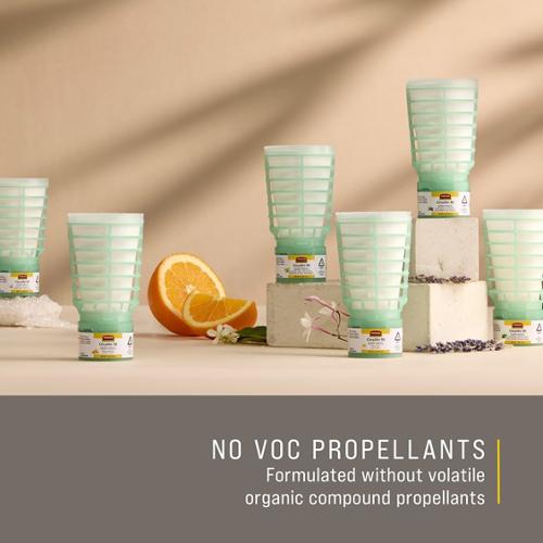 The Rubbermaid Commercial Products® CirculAir 90™ Citrus scent refill is engineered to deliver reliable air care performance with verified recyclability. Made from a single material, the refill is recycle-stream-ready and requires no dismantling.