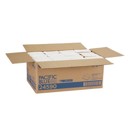Designed to fit into a wide range of multifold or trifold towel dispensers. Pacific Blue Basic economy multifold towels help you keep costs under control. This EPA compliant for recycled fiber content paper towel is an economical choice for environmentally concerned customers with areas such as washrooms in government and public facilities, schools, industrial/manufacturing, retail stores, cafeterias/quick service restaurants and lodging. Pacific Blue Basic multifold towels let you offer your customers quality and reliable performance while helping protect the environment. FSC certified. Sheet size: 9.400" x 9.200".