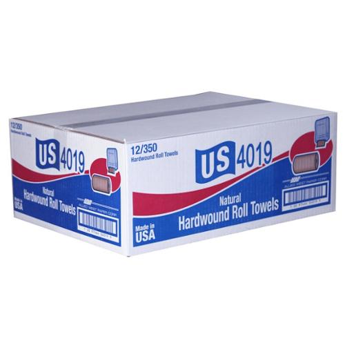 US 4019 - economical natural universal hard wound roll towels, offer reliable performance and are designed to fit a wide range of universal roll towel dispensers. The non-perforated towels are ideal for washrooms in government and public facilities, office buildings, foodservice facilities and lodging. Each 1-ply roll towel delivers dependable absorbency, thickness and strength. FSC Certified. Made in USA. Sheet size: 7.900".