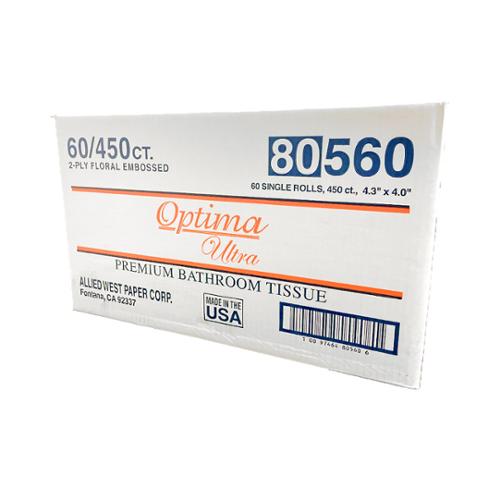 Optima 560 Premium bath tissue has a premium embossed design for excellent appeal. It complements that appeal with a 2-ply construction for superior softness! 20% EPA post consumer content. FSC Certified. Made in USA. Sheet size: 4.3" x 4.0".