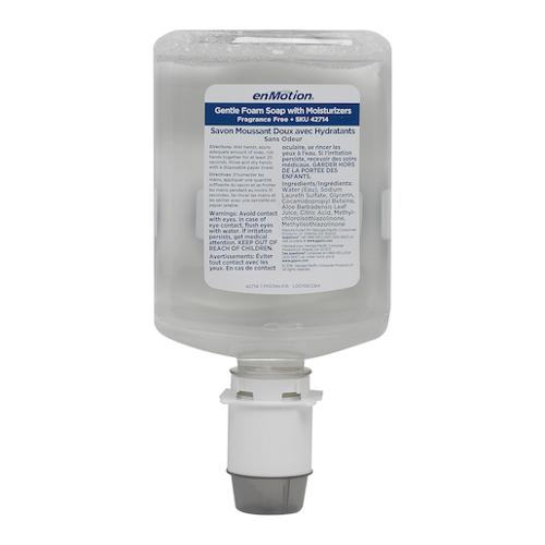 enMotion Gen 2 Foam Soap with Moisturizers has a rich foaming lather and hypoallergenic formula to leave skin feeling fresh and is gentle enough for daily use. Closed hygienic refill bottles install with one hand and dispense at least 99% of foam product before replacement is needed. Designed for use with enMotion Automated Touchless Soap Dispensers. 100% Recyclable bottles, contain 25% post-consumer content. This product meets Green Seal Standard GS-41A based on effective performance and protective limits on VOCs and human &environmental toxicity. SAFER Choice recognized for safer chemistry. USDA Certified Biobased Product. USGBA LEED. Made in USA