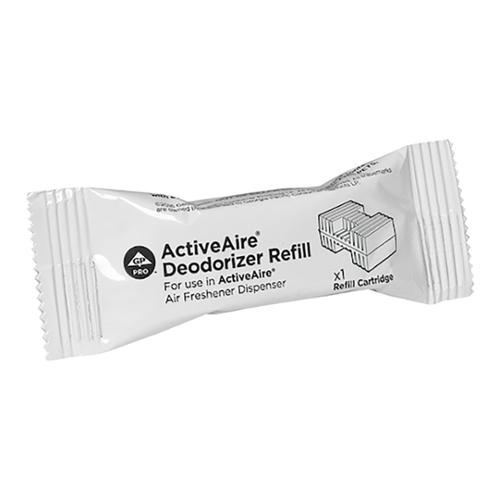Automatic in-stall odor neutralization and air freshening! The ActiveAire Deodorizer Refill works with the ActiveAire Freshener Dispenser to automatically stop odor in the stall and enhance the restroom experience for all. Escape to the coast with a fragrance that suggests fresh seaside air and a cool, gentle breeze. Mounted atop the Compact Side-By-Side Bath Tissue Dispenser, this state-of-the art odor management system uses motion-sensing technology to automatically neutralize odor while releasing a burst of freshness upon entering and leaving the stall and it's on-demand feature can be activated with the wave of a hand if a visitor needs a little extra burst of freshness. With on-trend scents are the same across the GP PRO ActiveAire Air Care System, so you can be confident your washrooms will provide a consistent and more welcoming experience for everyone. Providing sustained freshness for at least 30 days, each refill is compliant for VOC content with applicable federal and state regulations. No liquids or sprays are used. Made in USA.