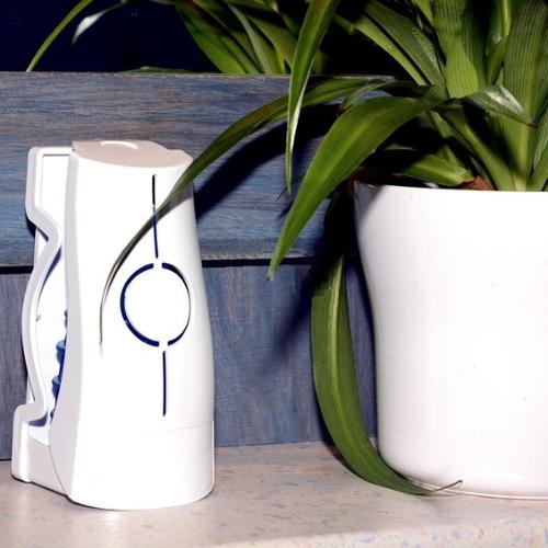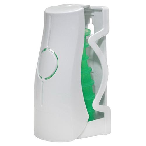 Eco-Air doesnt require any batteries and is effective for 30 days. The refill is a solid that has been infused with natural fragrance oils so theres no messy gels or liquids. The Eco-Air also works in many other popular dispensers. Made in USA.