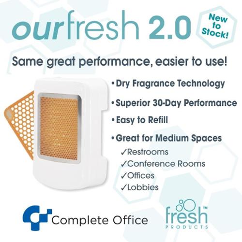 ourfresh 2.0 The modern solution to metered aerosol. The Dry fragrance technology is liquid-free and leaves no sticky residue. The Refills are Eco Friendly, 100% recyclable and are VOC compliant. Soft cotton blossom, linen flower, sweet muguet, spring blossom are enveloped into accords of violets, rose petals, tuberose, nectarine, and melon. Back notes of sandalwood, silkwood are supported with white powdery musk. Made in USA.Intensity: Medium