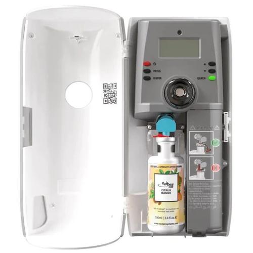 Vibe Pro brings metered aircare to the next level with industry-leading innovation and patented technology. Patented dosing enables Vibrating Mesh Technology to deliver superior scent consistency. Proprietary fragrance formulas pass through vibrating plates with 2,000 laser-cut holes, dispersing an ultra-fine mist that remains airborne longer. Units can be set for operation during specific days of the week and hours of the day to ensure use only when your facility is open, saving money on refills. Battery-powered units provide more flexibility in placement for optimal performance and batteries can last up to 18 months.