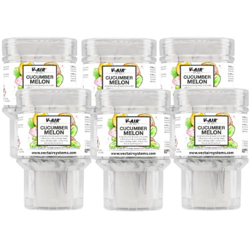 The multi-award winning Vectair V-Air SOLID utilizes pioneering multi-phasing air freshener technology through a Vectair V-Air SOLID Multi-Phasing Passive Dispenser and solid fragrance cartridge, delivering consistent fragrance intensity for up to 60 days. Vectair V-Air SOLID is free of batteries and propellants. VOC exempt. Cucumber & Melon mixes sweet and subtle. A fresh crush of cucumber leads into a calming melon, which drifts into an uplifting peach.