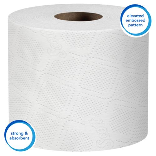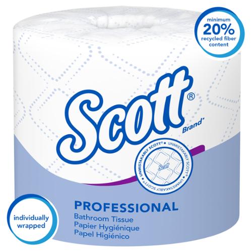 Each sheet is strong and absorbent, giving you a consistent, reliable experience for your bathroom visitors in all types of environments. If you're serious about being green" or eco conscious, this best-selling Scott Essential bath tissue fits the bill as it is FSC and ECOLOGO certified and meets or exceeds EPA guidelines for post-consumer waste content (at least 25%). Plus, the bulk rolls are individually wrapped (they're protected until you're ready to use them) and fit with most universal toilet paper dispensers. If practicality, reliability, and value top your list of criteria for bathroom supplies, trust Scott Essential Standard Roll Bath Tissue! Sheet size: 4" x 4"