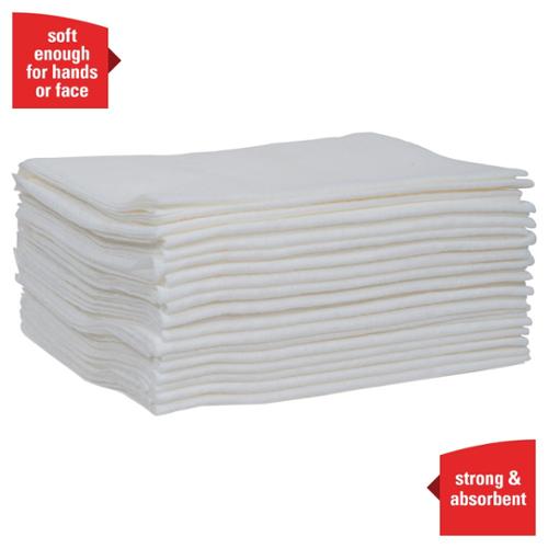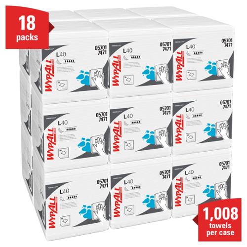 WypAll is the number one brand of disposable wipes in the US and Canada. Maximize performance while minimizing time effort and product waste. If you're looking for an effective wipe to absorb liquids lightning-fast, WypAll Power Clean L40 Extra Absorbent Towels are just what you need. These wipes are made of bonded cellulose using DRC (double re-creped) technology for strength, softness and absorbency. As a wiping towel, it soaks up liquids fast, but all youand your staffwill feel is softness, thanks to a plush, touchable outer layer. These utility wipes are specially designed to absorb liquids, lubricants and oils (in restaurants for wiping counters, in mechanic shops, industrial and commercial factories and more), yet they're soft enough for use on face and hands. Experience the difference in superior absorption and cleaning at your home or office today! 12.5" x 12" sheet size.