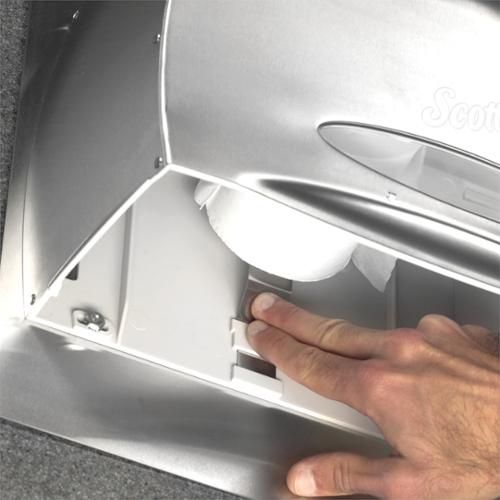 Scott Pro provides state of the art solutions to maximize productivity. If you're responsible for a high-traffic restroom, you need a high-capacity bathroom tissue dispenser. The Scott Pro Coreless Toilet Paper Dispenser is a great solution. It holds more than the equivalent of six standard commercial rolls of bath tissue and is designed to minimize run-out, waste and maintenance time. Since its suited to a jumbo roll with no core, it helps keep your washroom environmentally conscious. The easy-to-load system has no door, no key and no core to throw away. It features a smaller footprint than many other standard JRT dispensers and accepts high-capacity coreless JRT rolls. After all, you have better things to do than worry about refilling toilet paper! The high-capacity Scott Pro Coreless Toilet Paper Dispenser (in Stainless Steel) accepts compatible coreless JRT rolls; measures 14.25 x 9.75 x 6.