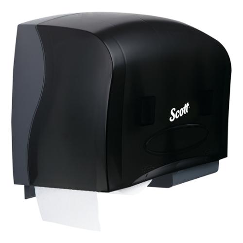 Scott Essential provides reliable balance of efficiency, performance and value. When you need a sleek, toilet paper dispenser, the black (Smoke) Double Roll Dispenser from Scott Essential is a great choice. The Double Roll Bathroom Tissue Dispenser offers a high capacity, easy maintenance system that can help lower maintenance costs. This system can be used with coreless jumbo bathroom tissue rolls from Kleenex and Scott Brand. Its easy to use and install and helps reduce waste by only allowing access to the reserve roll once the other roll is completely used. There is no door, no key and no core to throw away, simplifying your maintenance. There are tear-off bars on both sides of the dispenser opening for easy use by your bathroom guests. It is ADA compliant when properly installed and when used with recommended toilet paper. 1 Scott Essential Coreless Double Jumbo Roll Toilet Paper Dispenser, Black (Smoke), Dispenser dimensions: 20.1" x 10.9" x 5.9"