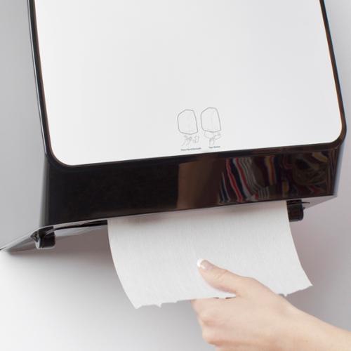 The Scott Pro Automatic Hard Roll Paper Towel Dispenser System (for Green Core Scott Pro Roll towels) is designed to take hand hygiene to another level. The Scott Pro Dispenser Systems have innovative internal dispensing that plug and play to customize it to meet your needs. It provides electronic motion-activated dispensing with the option for an unexposed sheet, which helps keep paper towels clean (popular with healthcare environments, where proper hand hygiene is critical). The automatic dispenser is 99.99% jam free - guaranteed, so you can count on its reliable, touchless operation. It dispenses a single sheet with each activation and is compatible with Scott Pro towels with Green Core plugs plus the stub roll. Plus the Scott Pro Automatic Hard Roll Towel offers the quietest electric roll towel dispenser on the market. Scott Pro Automatic Hard Roll Paper Towel Dispenser System combines touchless technology with the bacteria-reducing benefits of drying with paper towels, supporting and promoting better hand and surface hygiene. Dispenser (WxDxH) 12.660" x 9.180" x 16.440".