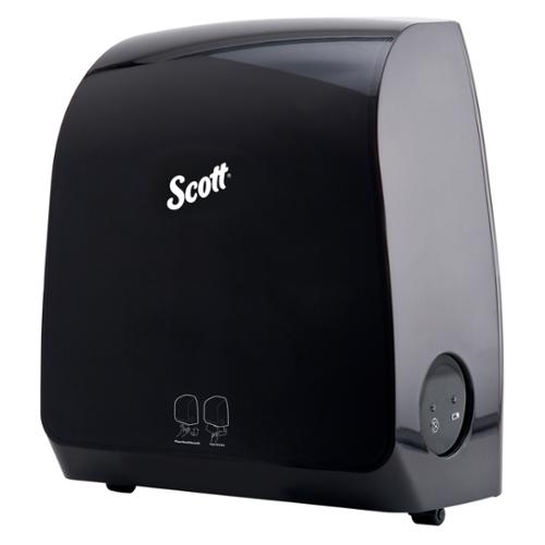 The Scott Pro Automatic Hard Roll Paper Towel Dispenser System (for Blue Core Scott Pro Roll towels) is designed to take hand hygiene to another level. The Scott Pro Dispenser Systems have innovative internal dispensing that plug and play to customize it to meet your needs. It provides electronic motion-activated dispensing with the option for an unexposed sheet, which helps keep paper towels clean (popular with healthcare environments, where proper hand hygiene is critical). The automatic dispenser is 99.99% jam free - guaranteed, so you can count on its reliable, touchless operation. It dispenses a single sheet with each activation and is compatible with Scott Pro towels with Blue Core plugs plus the stub roll. Plus the Scott Pro Automatic Hard Roll Towel offers the quietest electric roll towel dispenser on the market. Scott Pro Automatic Hard Roll Paper Towel Dispenser System combines touchless technology with the bacteria-reducing benefits of drying with paper towels, supporting and promoting better hand and surface hygiene. The Smoke/Black Scott Pro Automatic Hard Roll Paper Towel Dispenser (for Blue Core Scott Pro Roll towels) is touchless and electronic to help minimize the spread of germs.