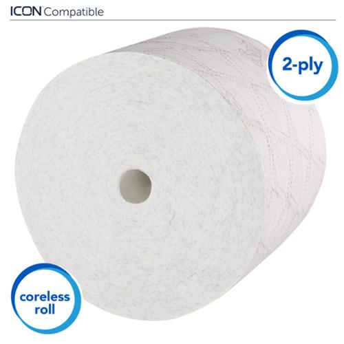 Scott Pro provides state of the art solutions to maximize productivity. This high capacity, small core SRB product fits into Kimberly-Clark Professional dispensers as well as many other high-capacity dispensers, making it a versatile, adaptable solution for your restroom needs. This is the longest Single Roll Bath Tissue on the market offered by Kimberly-Clark Professional and comes with the efficiency and reliability of America's most well-known washroom brand, Scott Pro Bath Tissue. ECOLOGO and FSC certified. Sheet Size: 3.900" x 3.700".