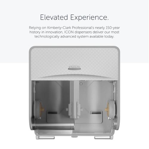 The Kimberly-Clark Professional ICON dispensing system is our newest industry-leading innovation, changing the face of the restroom forever. Featuring first-of-a-kind versatility, the ICON dispenser effortlessly enhances the look of the restroom with an exclusive line of designer faceplates to help reimagine the restroom. The ICON 4 Roll Toilet Paper Dispenser provides state of the art solutions to maximize productivity. The ICON dispenser is made of durable plastic and holds four tissue rolls in a side-by-side configuration. Designed with the contemporary, stylish profile, it delivers an exceptional experience and provides consumption control and waste reduction. The dispenser is manually operated and opens using either the keyless push button option or the included key. The rolls are placed on two tissue roll holders (known as H mandrels), designed for coreless or small core toilet paper. The rolls are placed on each end of the H mandrel and with the door closed, the four rolls are visible in the dispenser. They are easily accessible through the front with no need to open the dispenser to access another roll. When properly installed and when using recommended product, the dispenser meets the ADA Standards for Accessible Design. These gorgeous dispensers feature our interchangeable faceplate technology and complement the other ICON paper towel and skin care dispensers in the collection.