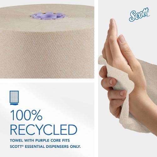 Scott Essential provides a reliable balance of efficiency, performance and value. The Scott Essential 100% Recycled Brown Towel is an affordable, absorbent, high-quality brown towel that will be an excellent choice for your business. With proprietary Absorbency Pockets, the towel helps reduce waste because fewer towels are needed to dry hands effectively. These towels can absorbs water up to 75% faster than the leading competitive brown towel while using up to 38% less fiber, all because of the magic of Absorbency Pockets technology. It's also made with 100% recycled fiber and from one of the world's most trusted brands, Scott?. These absorbent recycled paper towels are designed for efficient general-purpose cleaning and drying, so your employees and guests will use less, saving you money. FSC Certified. ECOLOGO certified. NSF registered. Made in USA.