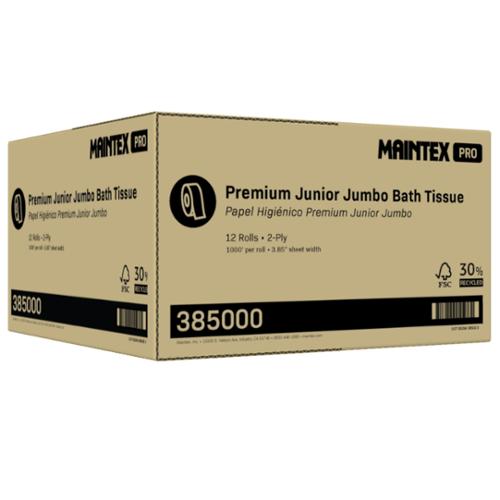 Reduce maintenance and keep restrooms stocked with Maintex Pro Premium Junior Bath Tissue. Designed for high-traffic environments, this jumbo roll format minimizes roll changes while delivering the quality and comfort users expect. Made with 30% recycled content and FSC certified, supporting responsible forestry.