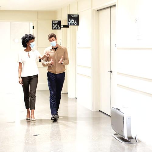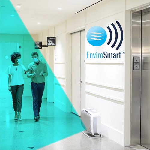The only air purifier that automatically responds to occupancy and air quality levels. Delivers 3-5 air changes per hour (ACH) in 300-550 square feet shared spaces such as waiting rooms and restrooms. Quiet operation. Patented EnviroSmart technology continuously monitors occupancy and room air quality and automatically adjusts to clean the air. 4-stage True HEPA filtration system removes 99.97% of all airborne contaminants, including viruses. Antimicrobial HEPA treatment prevents bacteria growth on the filter and activated carbon filter reduces odors and VOCs. Commercial grade wall mount air purifier with 5-year limited warranty.