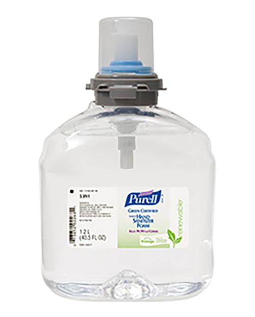 Luxurious foam made with naturally-renewable ethanol. Kills more than 99.99% of most common germs that may cause illness. Meets EcoLogo hand sanitizer standard for environmental leadership and proven performance. Meets the biobased standard for the USDA BioPreferred program. Outperforms other hand sanitizers ounce-for-ounce. Removable pump for easier recycling. SANITARY SEALED refill helps prevent contamination. For use with PURELL TFX Dispensers. Made in USA.