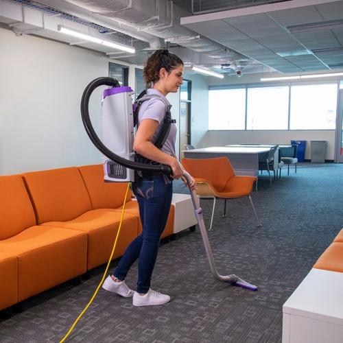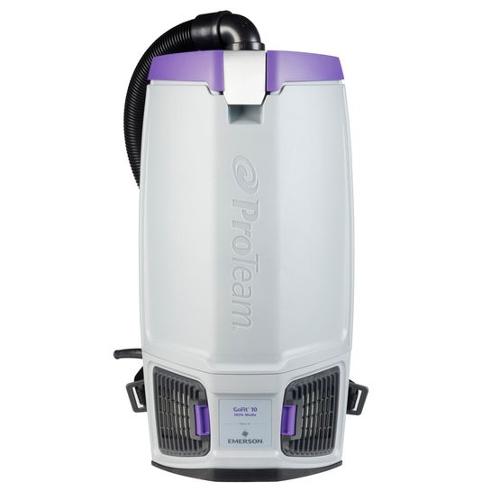 The 10 qt. GoFit commercial backpack vacuum is ProTeam's largest version, which can contain sizeable debris while delivering supreme balance and ease of use. The 10 qt. is an example of continuous comfort with the patented 4-step FlexFit articulating harness system. Inspired by top-rated backpacks beloved by hikers worldwide is designed to rest comfortably on the user's hips for hours of wear. Additionally, the FlexFit harness's purple numbered touchpoints provide a customized, quick-adjust fit that doesn't require tools. And, with more freedom to move because of its close-fitting profile, you'll bump into fewer objects as you work. The ProLevel Filtration System with HEPA Media, helps reduce allergens and asthma triggers found in the indoor environment and captures 99.86% at 0.3-5 microns per ASTM F3150. When it comes time to change out the filters, to ensure maximum efficiency, you'll find one hand is all you need with the newly designed hinged lid with a single, durable, quick-release, die-cast aluminum latch foreasy access