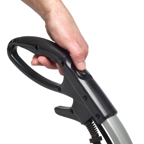 - Two-speed switch conveniently located on the vacuum handle, including a low setting for bare floors and quieter operation and a high power setting for carpet cleaning