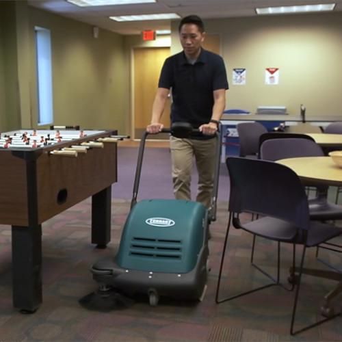 Tennant's S6 and S7 Walk-Behind Sweepers are built to stand up to a variety of environments, while operating quietly to avoid disruption. Sweep virtually anytime, anywhere, with cordless operation and wide sweeping paths. Clean either hard or soft floors with an auto-adjust main brush (S6) and side brush or adjustable main brush (S7) and side brush. Operate confidently with long-lasting components, including a steel frame and durable covers and handles. Clean multiple surfaces such as carpet, VCT, polished stone, terrazzo, grouted ceramic and porcelain tile, concrete and asphalt.