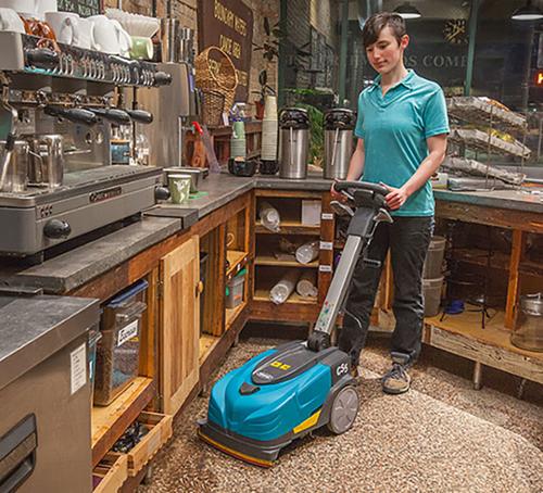 Drop the mop and get a better level of clean with the CS5 Micro-Scrubber. This innovative, 21st century scrubber eliminates many of the challenges of traditional mop and bucket cleaning. Instead of pushing around dirty water, the CS5's separate solution and recovery tanks deliver fresh water for scrubbing. Where traditional mop and bucket cleaning would often leave behind a slick, dangerous floor, the CS5 leaves a safer, drier floor by quietly and effectively recovering used water.