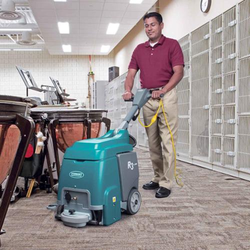 Achieve beautifully clean, always-ready carpet spaces using the Tennant R3 Compact Carpet Extractor with ReadySpace Rapid Drying Carpet Cleaning Technology. The R3 extractor quickly cleans small areas and reaches tight spaces with its ultra-low profile and compact design.