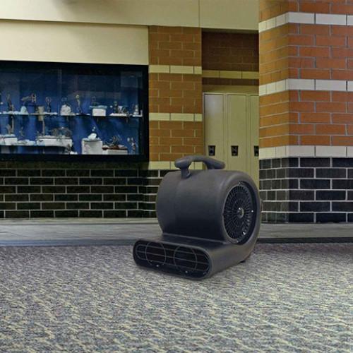 Dry surfaces faster with an air mover known for its durability and efficiency. Choose from three positions and three speeds so the commercial dryer / air mover can quickly dry carpet, hard floors, fresh paint, concrete sealer and more. The air mover's innovative design allows you to stack multiple units and an optional wheel cart provides effortless maneuverability. 120V/60 Hz, 0.6 HP/522 Watt motor, Rated Airflow 1350 CFM